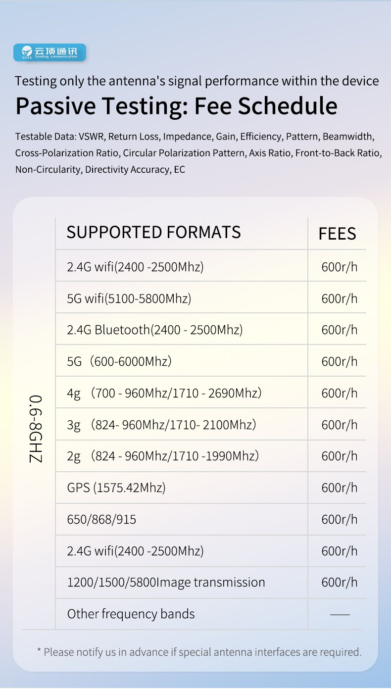 Antenna Tuning OTA Anechoic Chamber Testing TRP/TIS Active/Passive Axial Ratio Circular Polarization Pattern RF Certification Testing