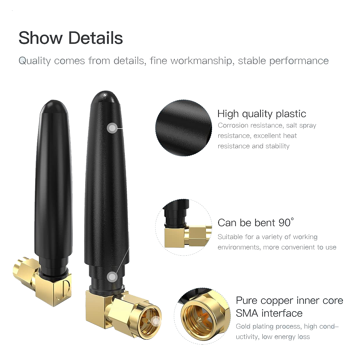 Connector type: Right Angle SMA male or RP-SMA male or Customized